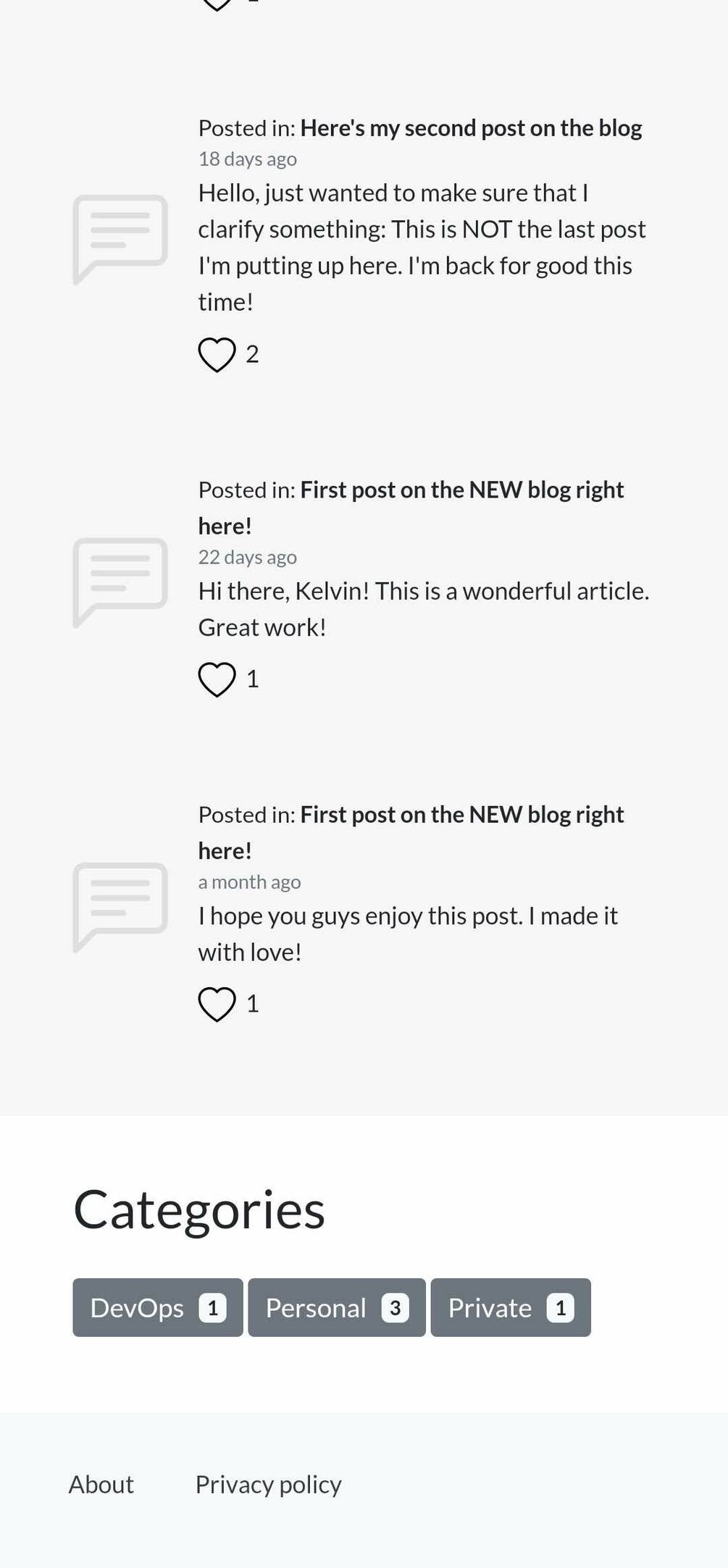 * Admin panel for creating, updating and deleting posts, users, comments and categories.